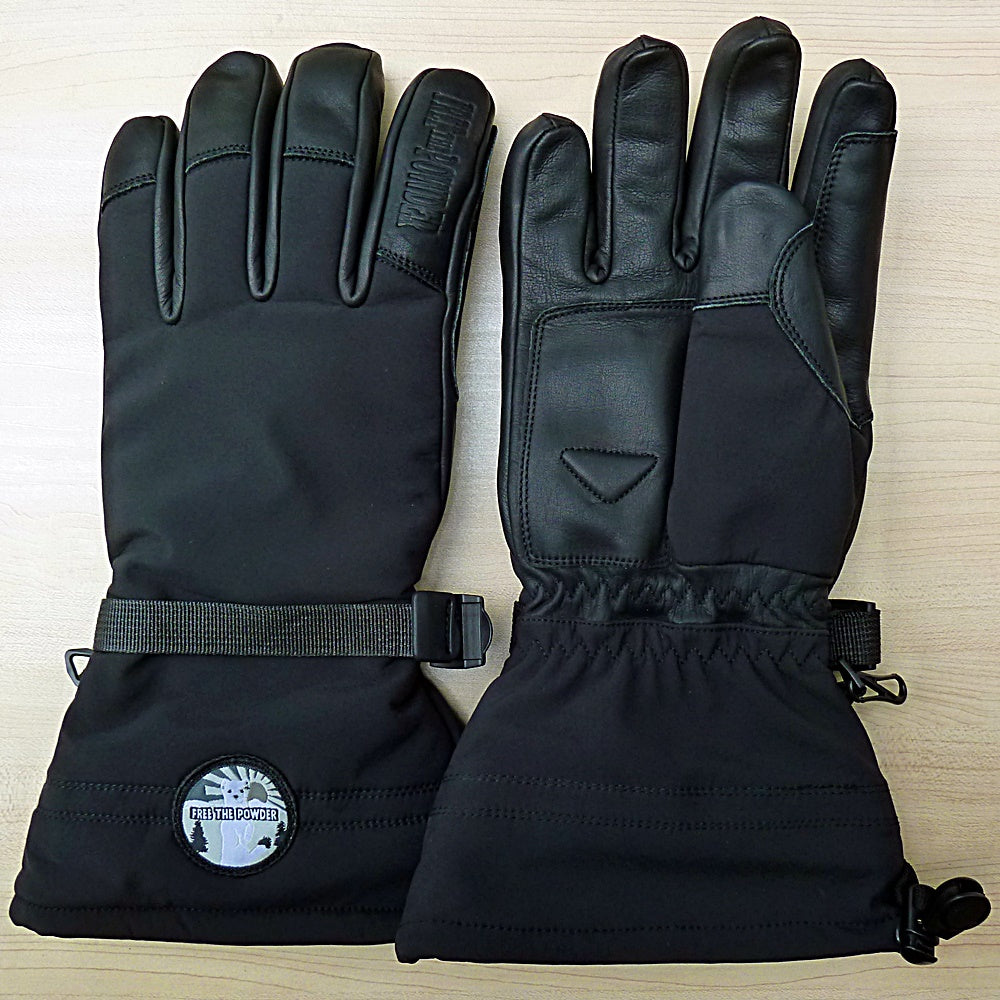 Free the Powder gloves are made from soft cowhide leather and flexible, stretch softshell so they will break in more than most ski gloves. The leather is very grippy, so dexterity will not be adversely impacted by gloves that are a bit roomy. Our founder and head designer's original vision was a glove that could be warmer (and roomier) and still allow him to manipulate backcountry gear.